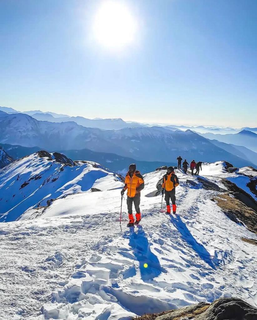 What makes this trek truly special is the combination of frozen alpine lakes and panoramic Himalayan views. You get to witness the stunning Brahmatal Lake and Bekaltal Lake, surrounded by snow and dense forests.